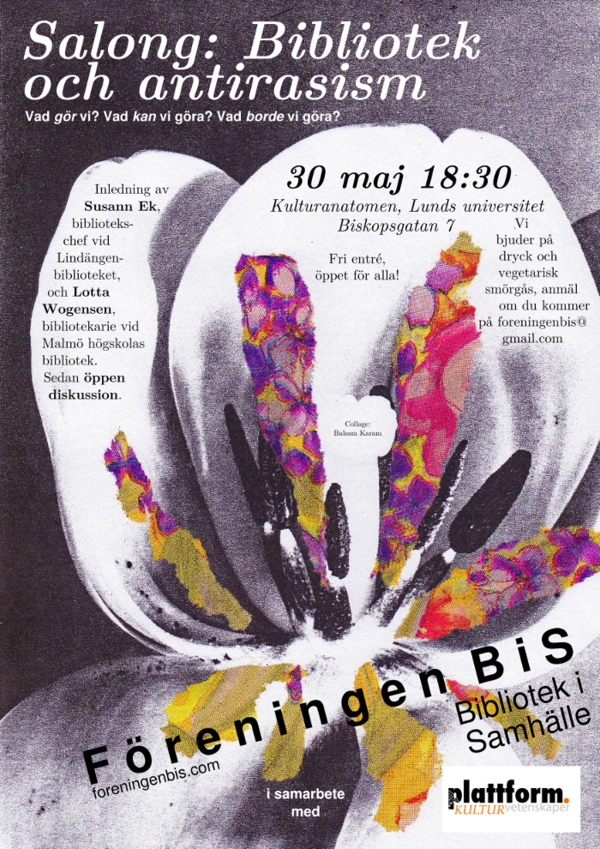 I Stockholm anordnades i mars salong med temat Bibliotek och antirasism vilket gav upphov till intressanta diskussioner kring rekrytering, medieurval, mångspråk, programverksamhet, kompetens osv. (se http://foreningenbis.com/2012/03/13/vad-hande-pa-bissalong-3/), och även nästa nummer av tidskriften bis, som kommer att finnas i tryck vid salongen i maj, har detta som tema.